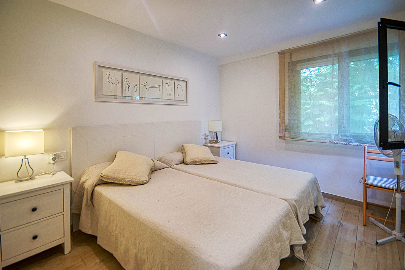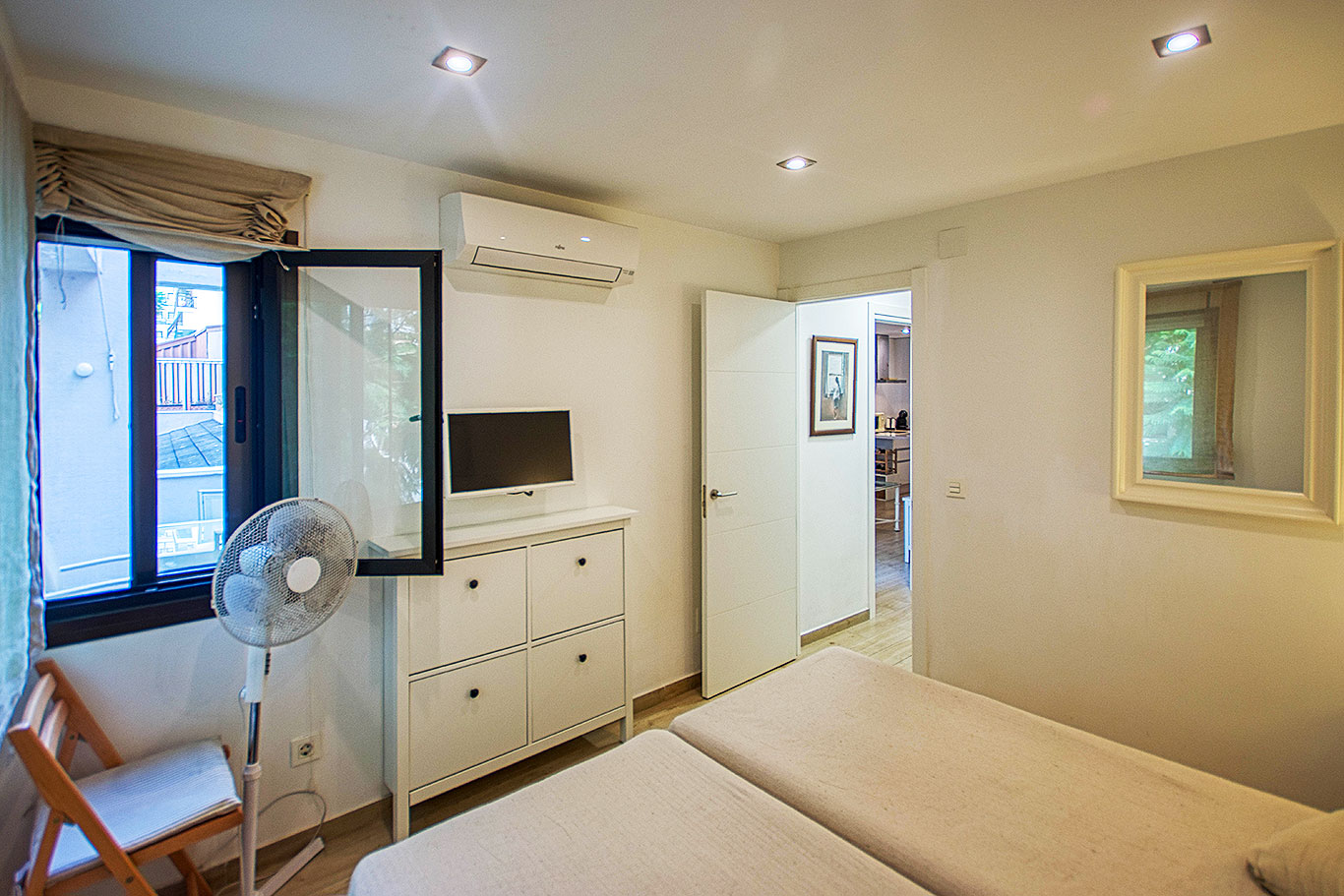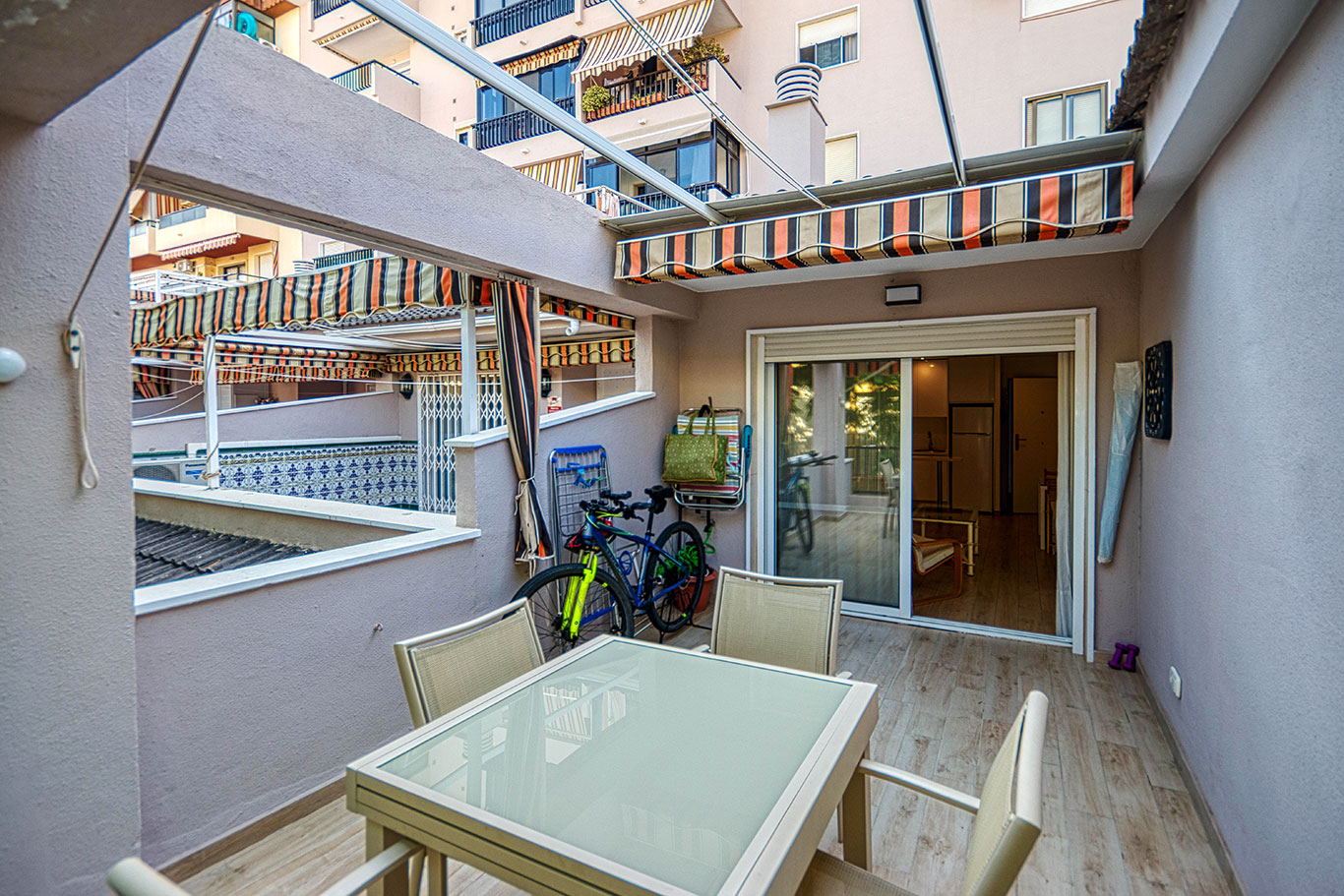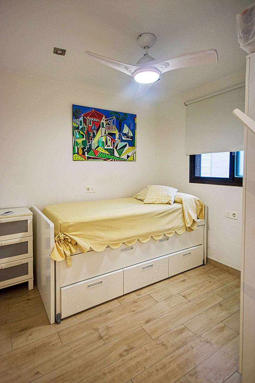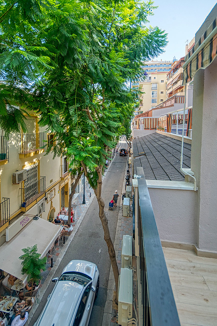 Orientado al noreste, con vistas a la tranquila calle Poeta Salvador Rueda. Dispone de 2 dormitorios (principal con aire acondicionado y segundo dormitorio con cama nido y ventilador de techo), 1 baño completo, cocina americana equipada y salón-comedor con acceso a amplia terraza con pérgolas, ideal para disfrutar del aire libre.